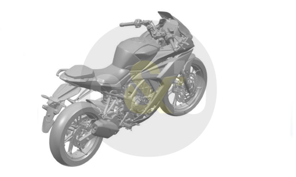The available patent image provides a top-ish rear view of the motorcycle, showing the contour of the fairing, the profile of the tail section and a better understanding of the handlebar design and the things around it. The Karizma XMR will feature raised clip-on bars clamped to the fork tubes while resting on the top triple clamp. Next is the digital instrumentation that sits right behind the front fairing. Moving further, the motorcycle features a split-seat design that is accompanied by a well-sculpted tail section and a stubby exhaust canister.